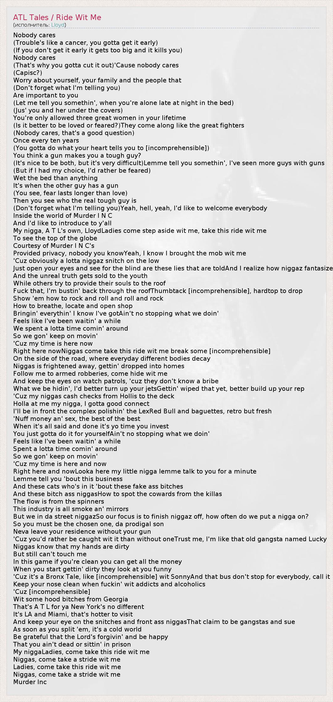 А как ты думаешь, о чем песня "ATL Tales / Ride Wit Me" ?