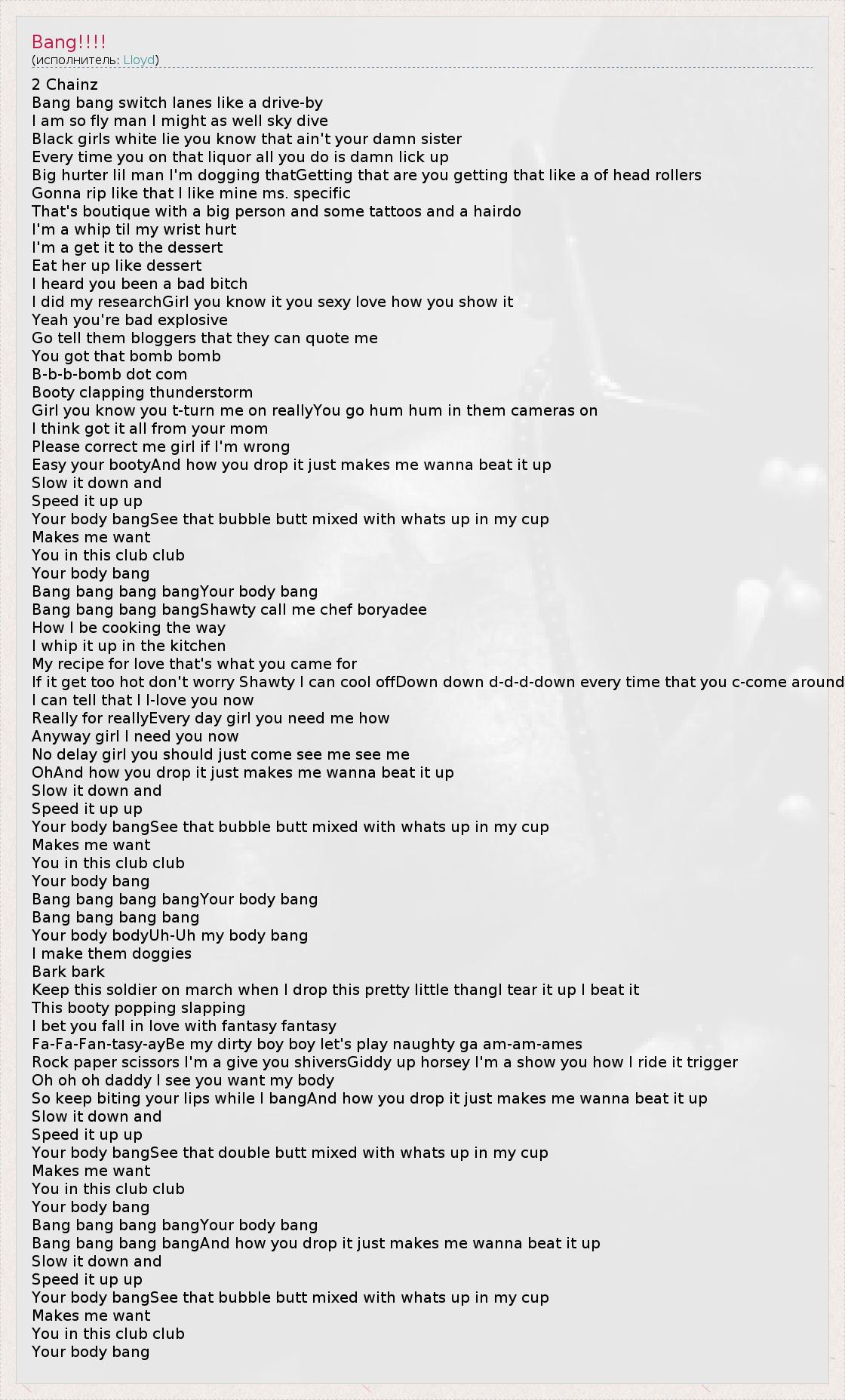 Bang bang bang bangYour body bang