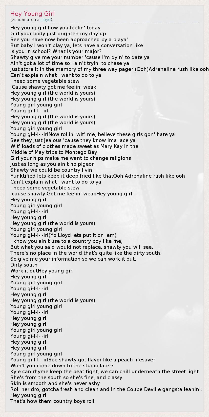 А как ты думаешь, о чем песня "Hey Young Girl" ?