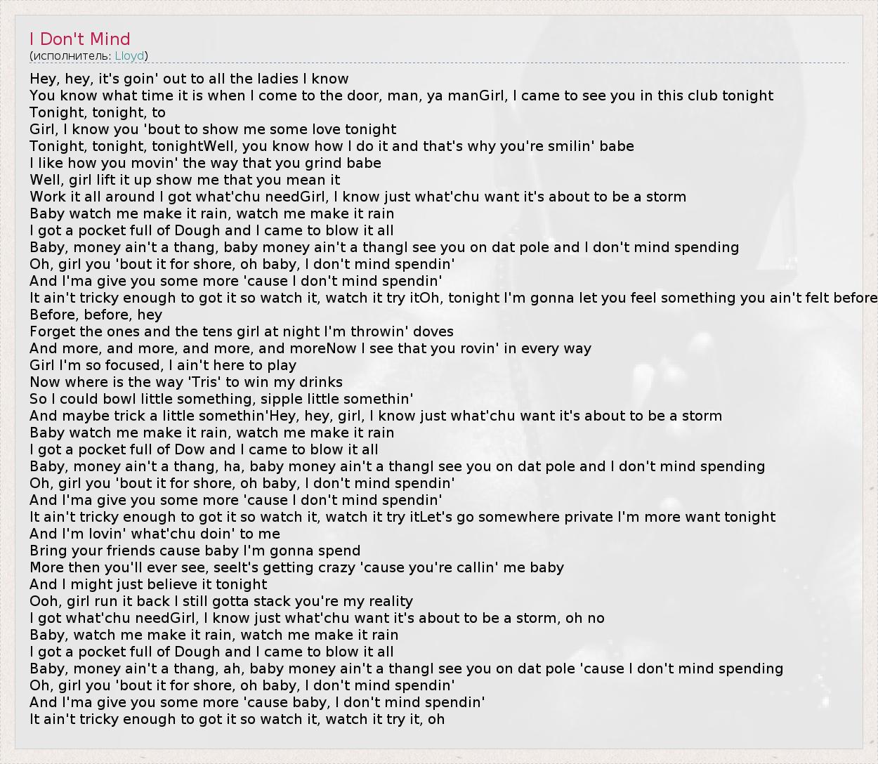 А как ты думаешь, о чем песня "I Don't Mind" ?