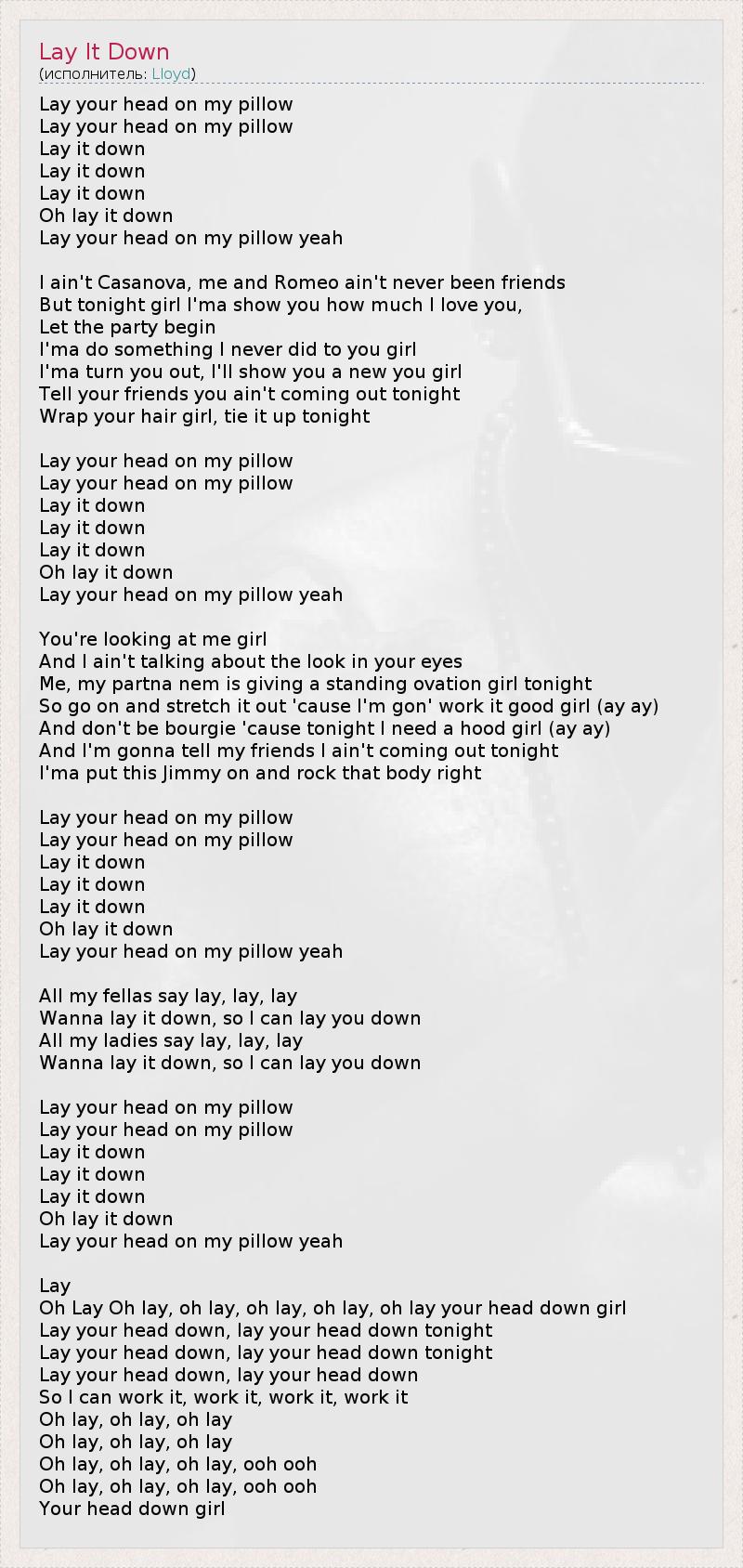 А как ты думаешь, о чем песня "Lay It Down" ?