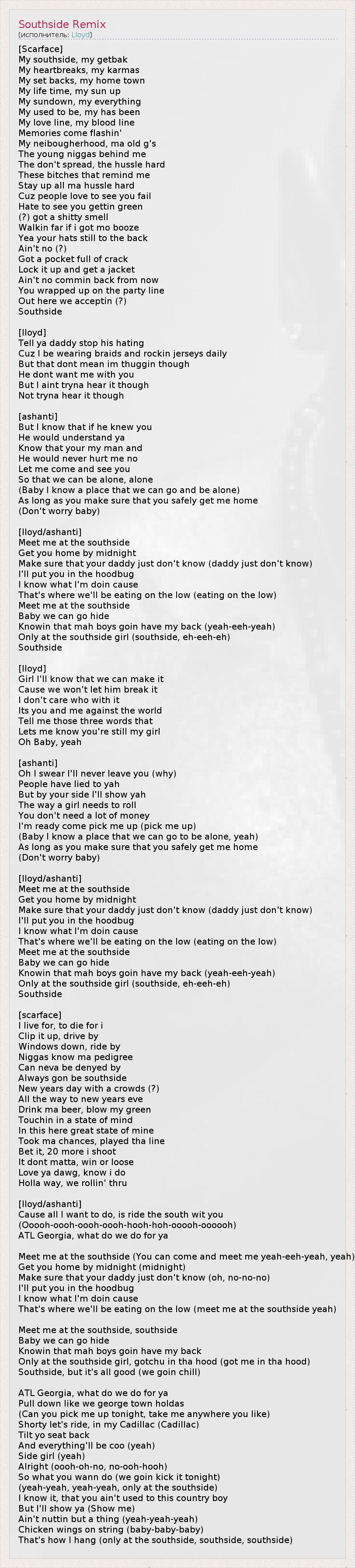 А как ты думаешь, о чем песня "Southside Remix" ?