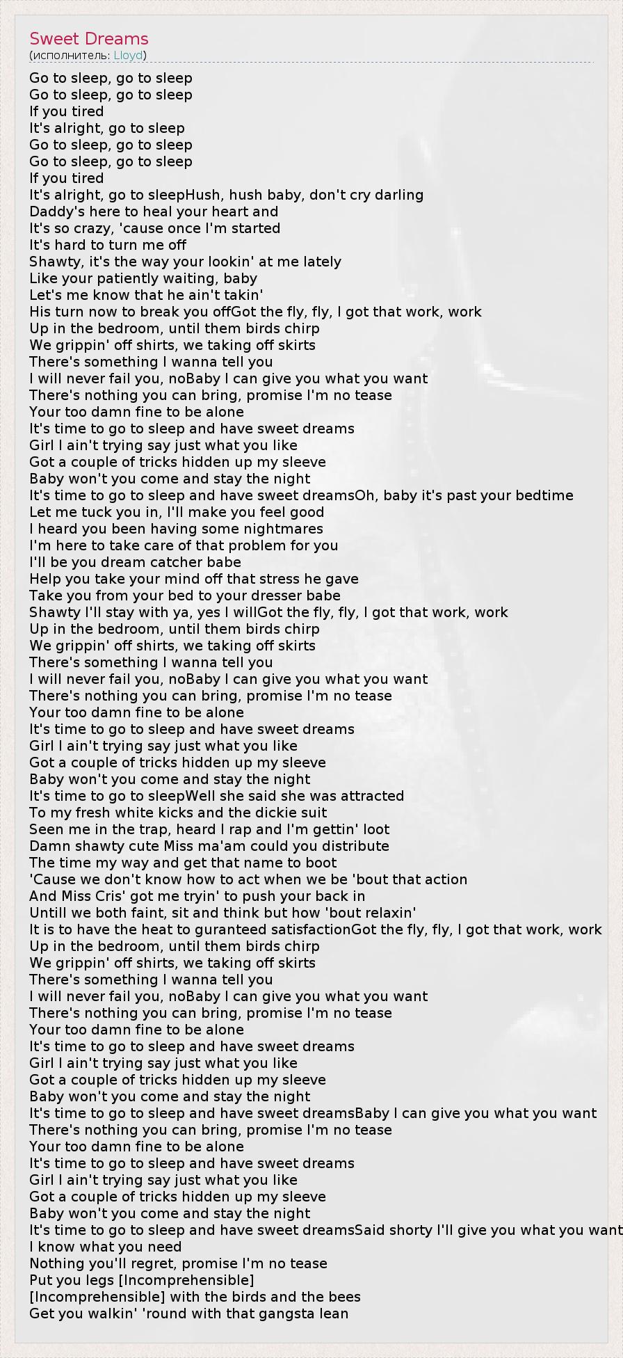 А как ты думаешь, о чем песня "Sweet Dreams" ?