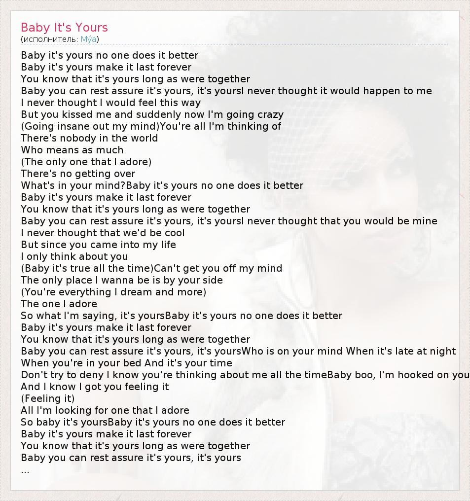 А как ты думаешь, о чем песня "Baby It's Yours" ?