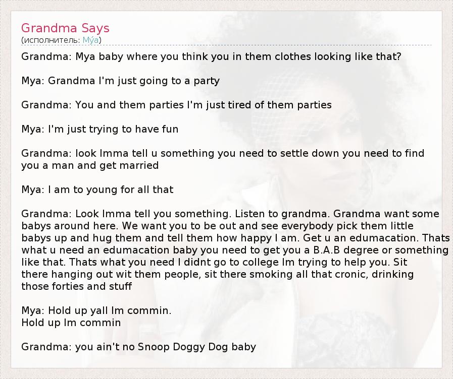 А как ты думаешь, о чем песня "Grandma Says" ?
