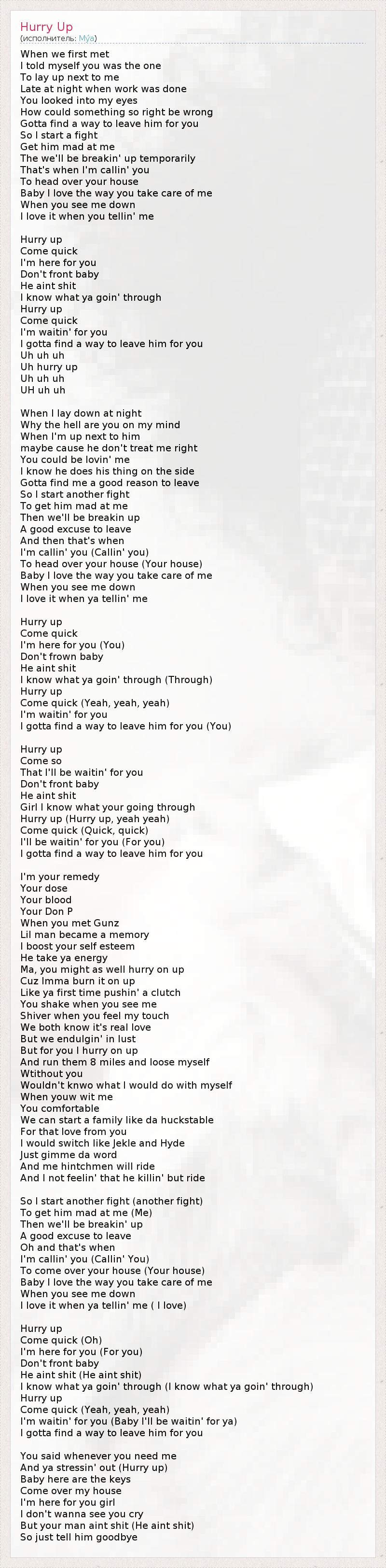 А как ты думаешь, о чем песня "Hurry Up" ?