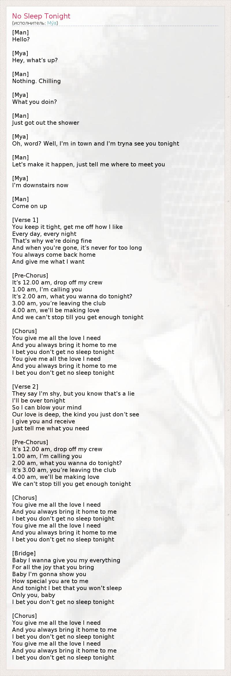 А как ты думаешь, о чем песня "No Sleep Tonight" ?