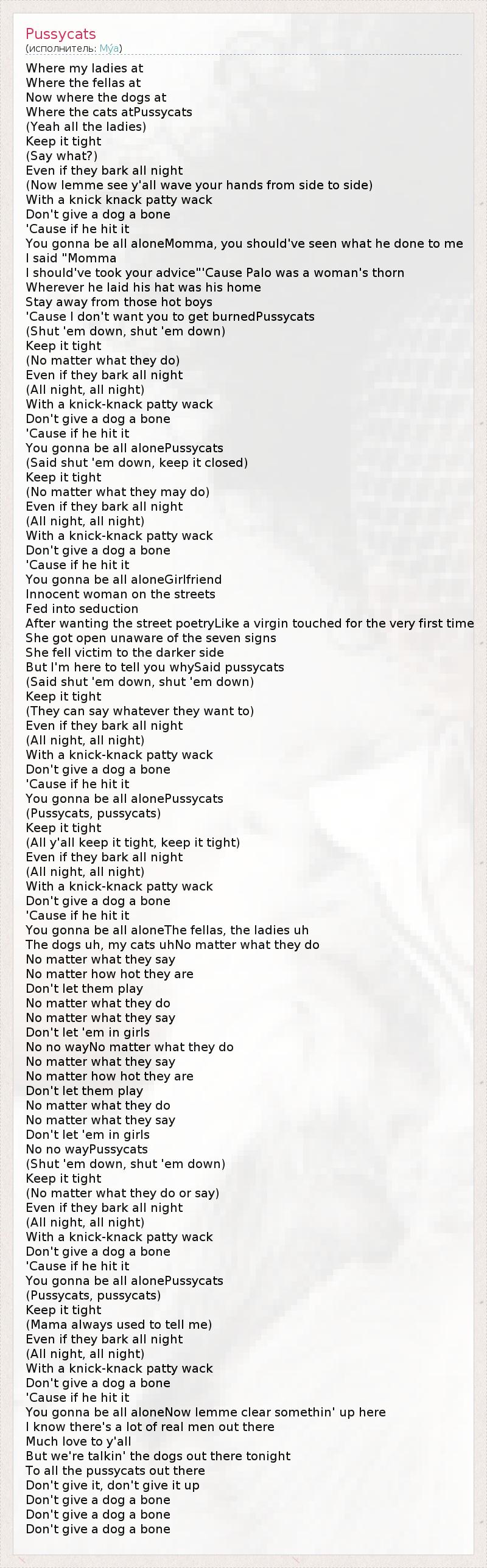 А как ты думаешь, о чем песня "Pussycats" ?