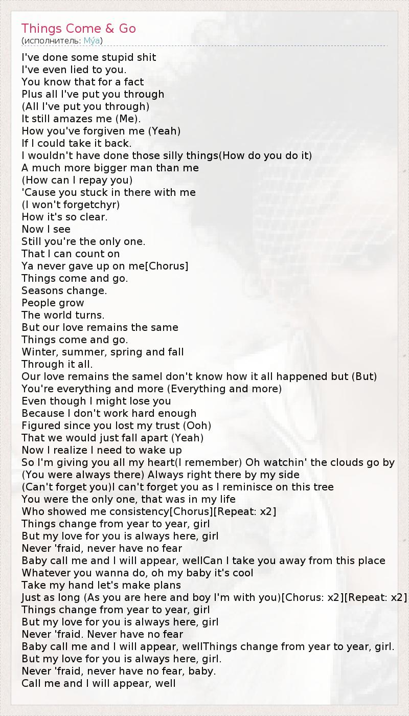 А как ты думаешь, о чем песня "Things Come & Go" ?