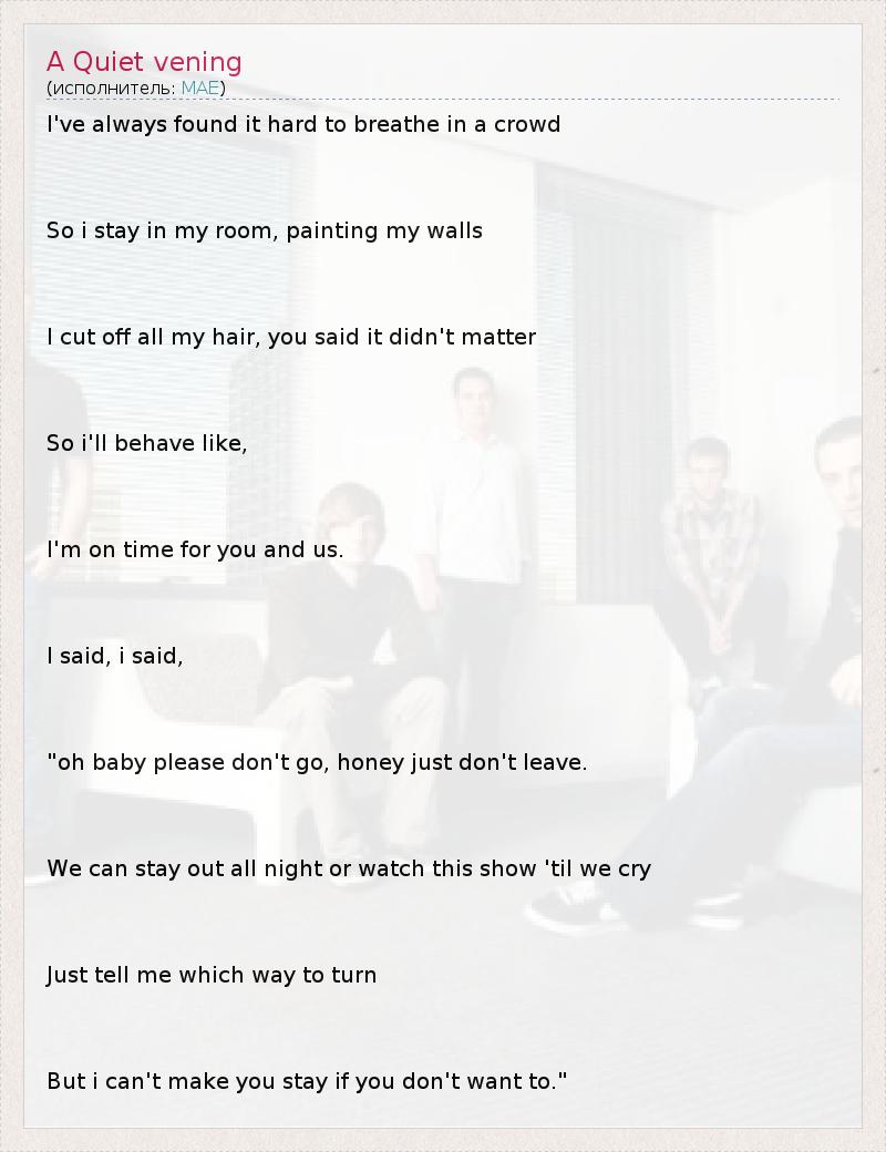 А как ты думаешь, о чем песня "A Quiet vening" ?