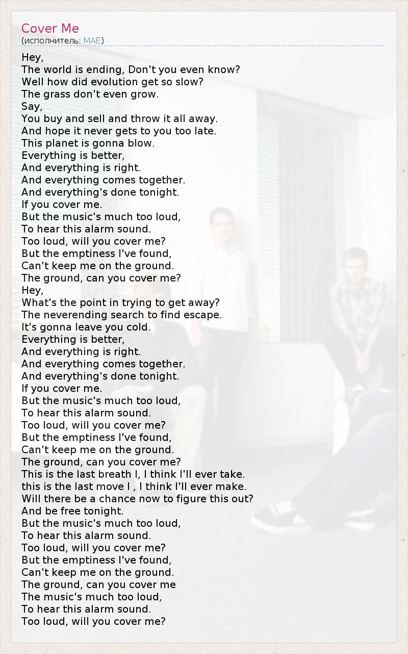 Это интересно:Группа "Mae" была образована в 2001-м в Норфолке (штат Виржиния). Название Mae - это аббревиатура Multisensory Aesthetic Experience, и эти “мульти-сенсорные эстеты” привнесли своих красок в квази-имо-ветку, выросшую на почве увядающего имо-рока.Почти все они были связаны с музыкой с самого детства. Иаков родился в семье хиппи (эстетских), и с раннего детства в их доме звучала музыка с утра до ночи. Зак... продолжение