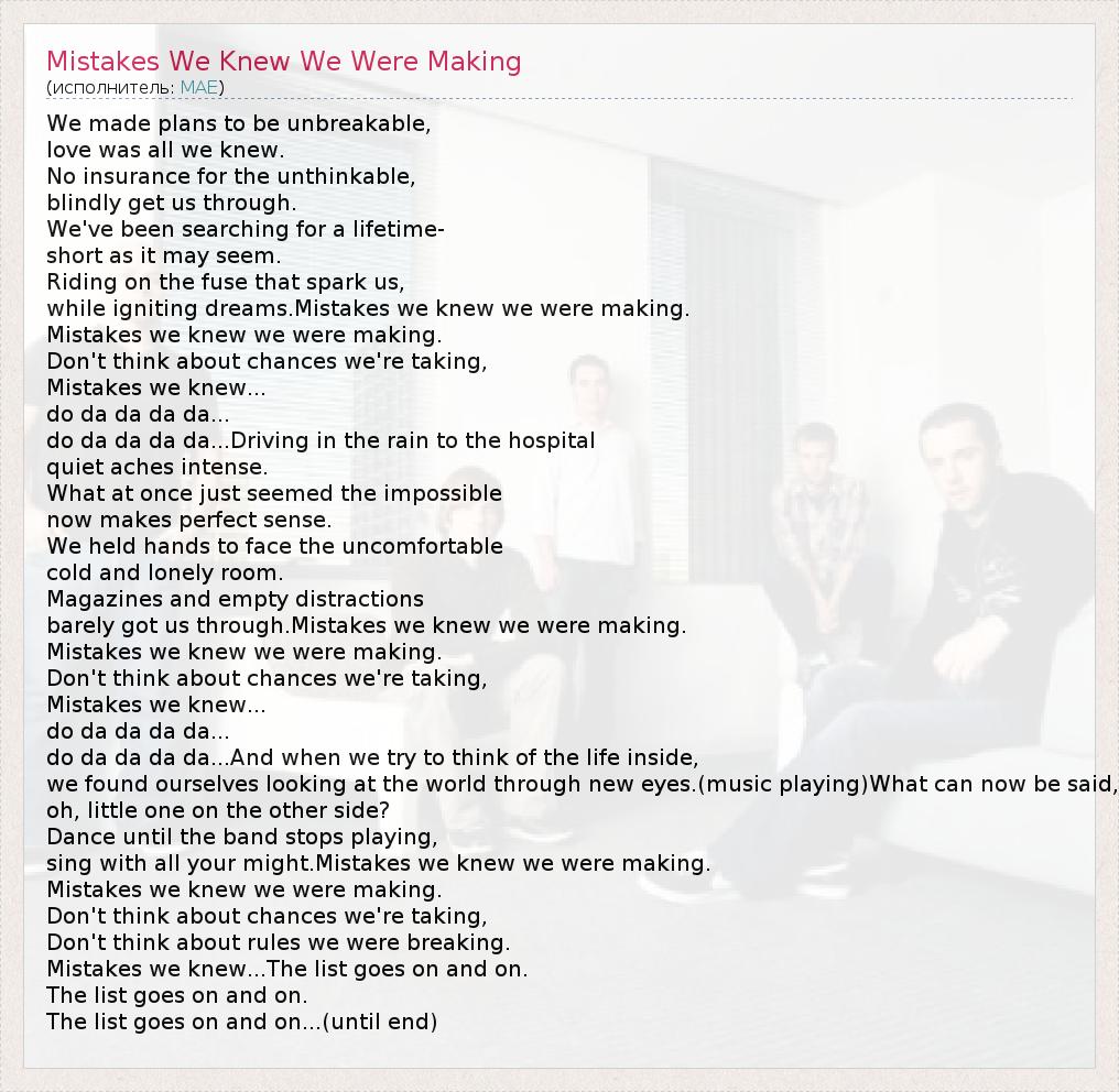 ГлавнаяИсполнителиMAEMistakes We Knew We Were Making