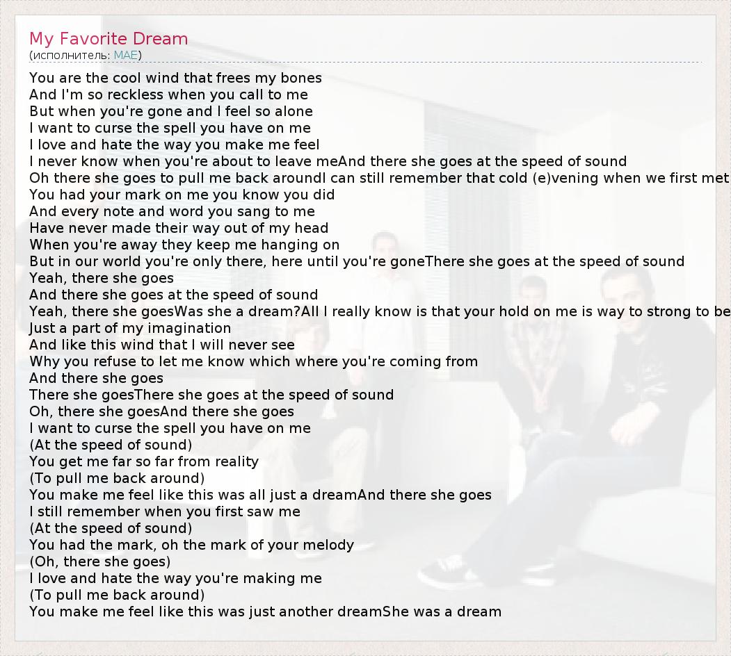 ГлавнаяИсполнителиMAEMy Favorite Dream