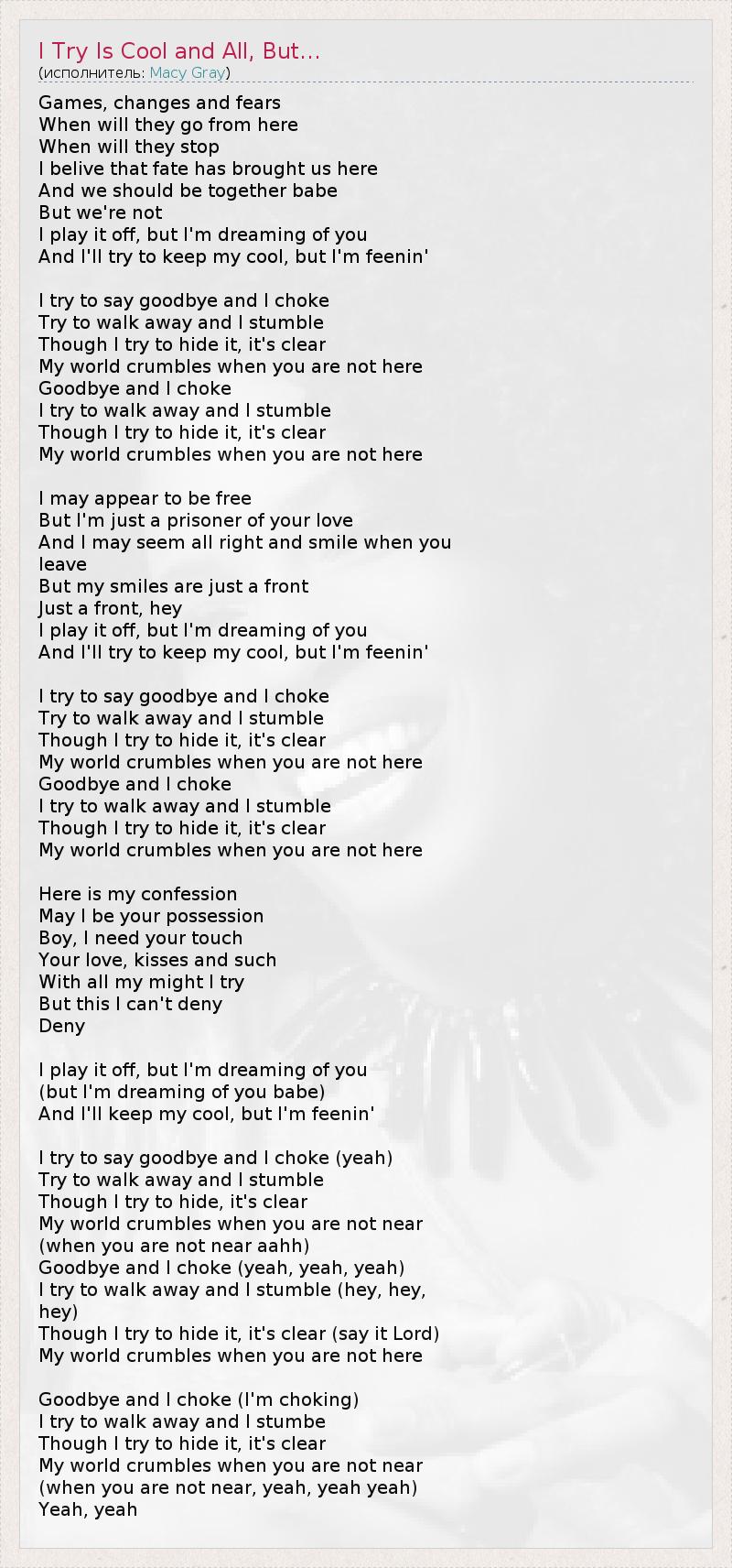 ГлавнаяИсполнителиMacy GrayI Try Is Cool and All, But...