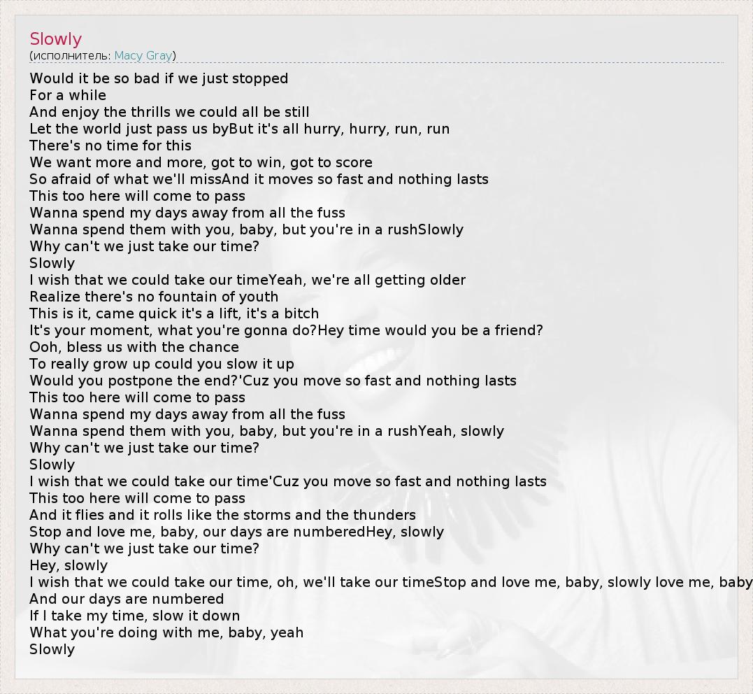 А как ты думаешь, о чем песня "Slowly" ?