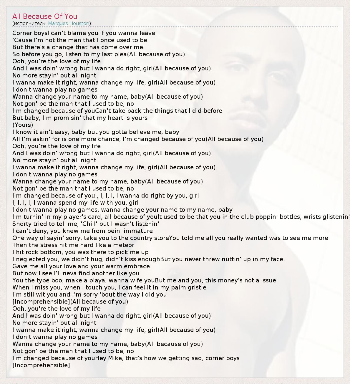 А как ты думаешь, о чем песня "All Because Of You" ?