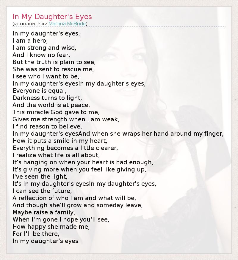 А как ты думаешь, о чем песня "In My Daughter's Eyes" ?