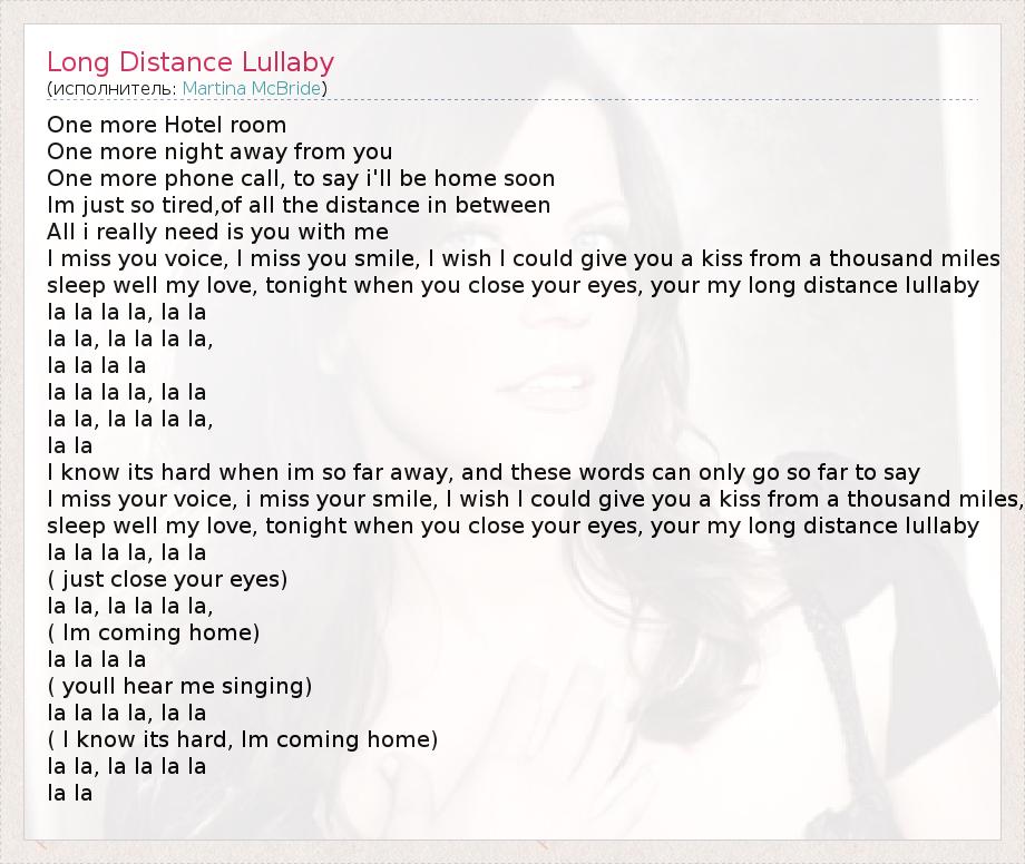 А как ты думаешь, о чем песня "Long Distance Lullaby" ?