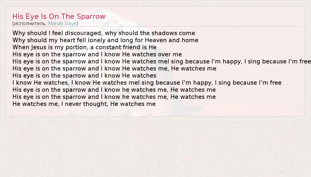 ГлавнаяИсполнителиMarvin GayeHis Eye Is On The Sparrow
