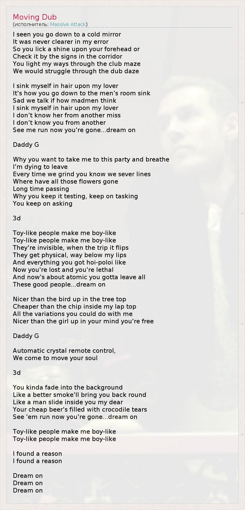 А как ты думаешь, о чем песня "Moving Dub" ?