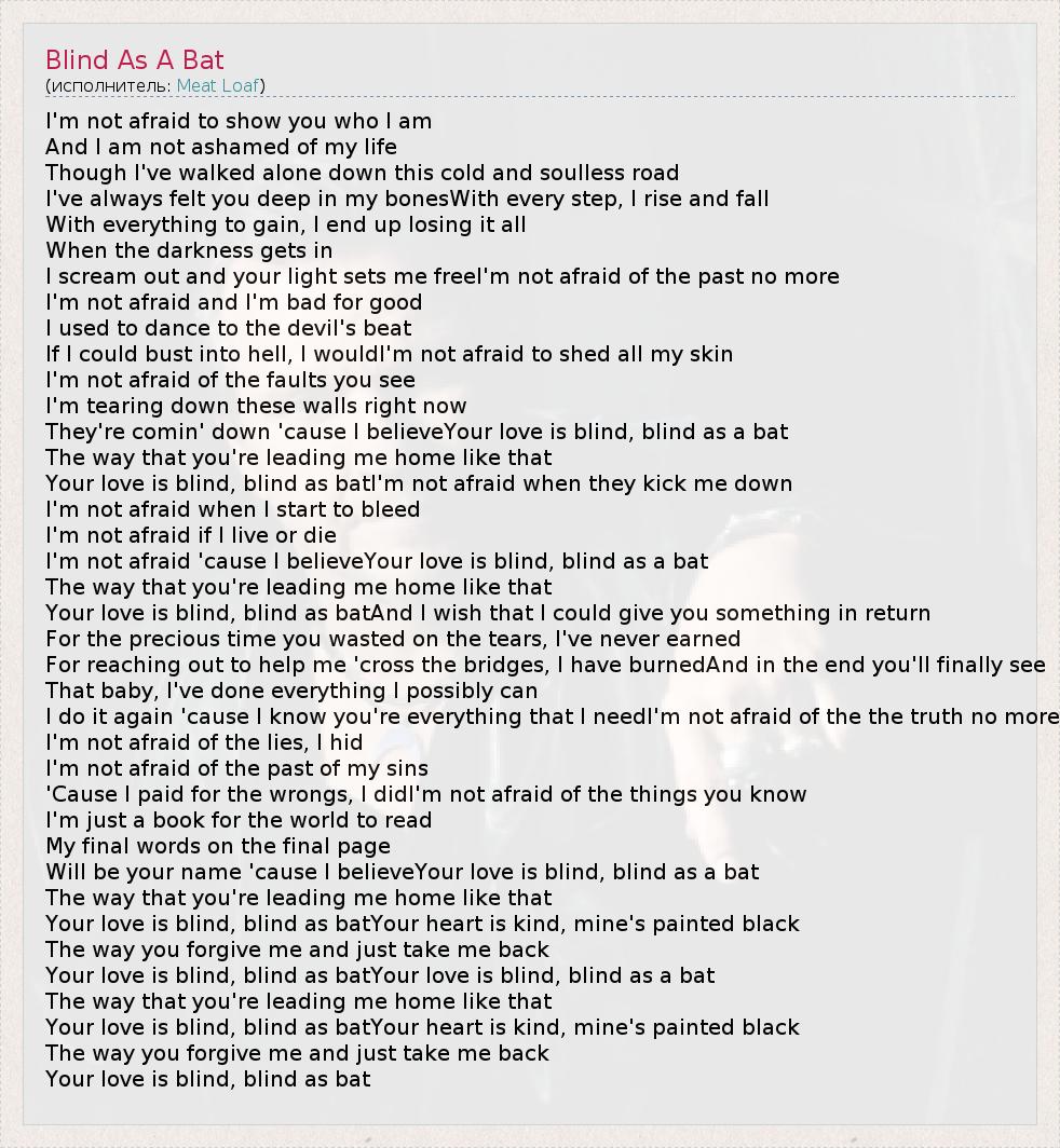 I'm not afraid 'cause I believeYour love is blind, blind as a bat