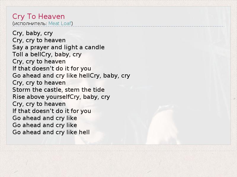 А как ты думаешь, о чем песня "Cry To Heaven" ?
