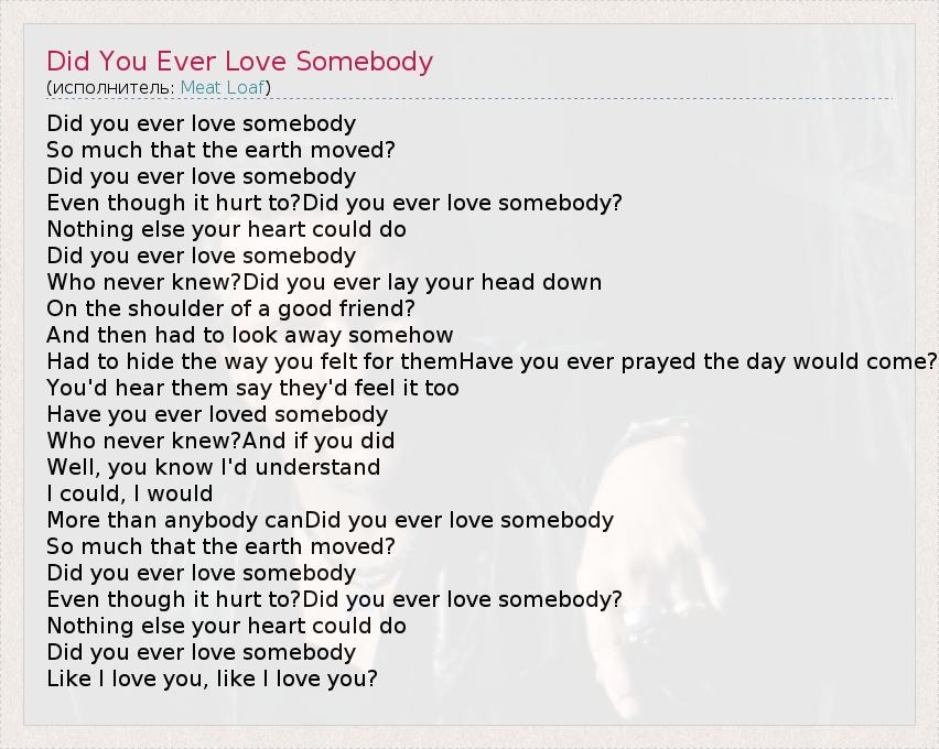 А как ты думаешь, о чем песня "Did You Ever Love Somebody" ?