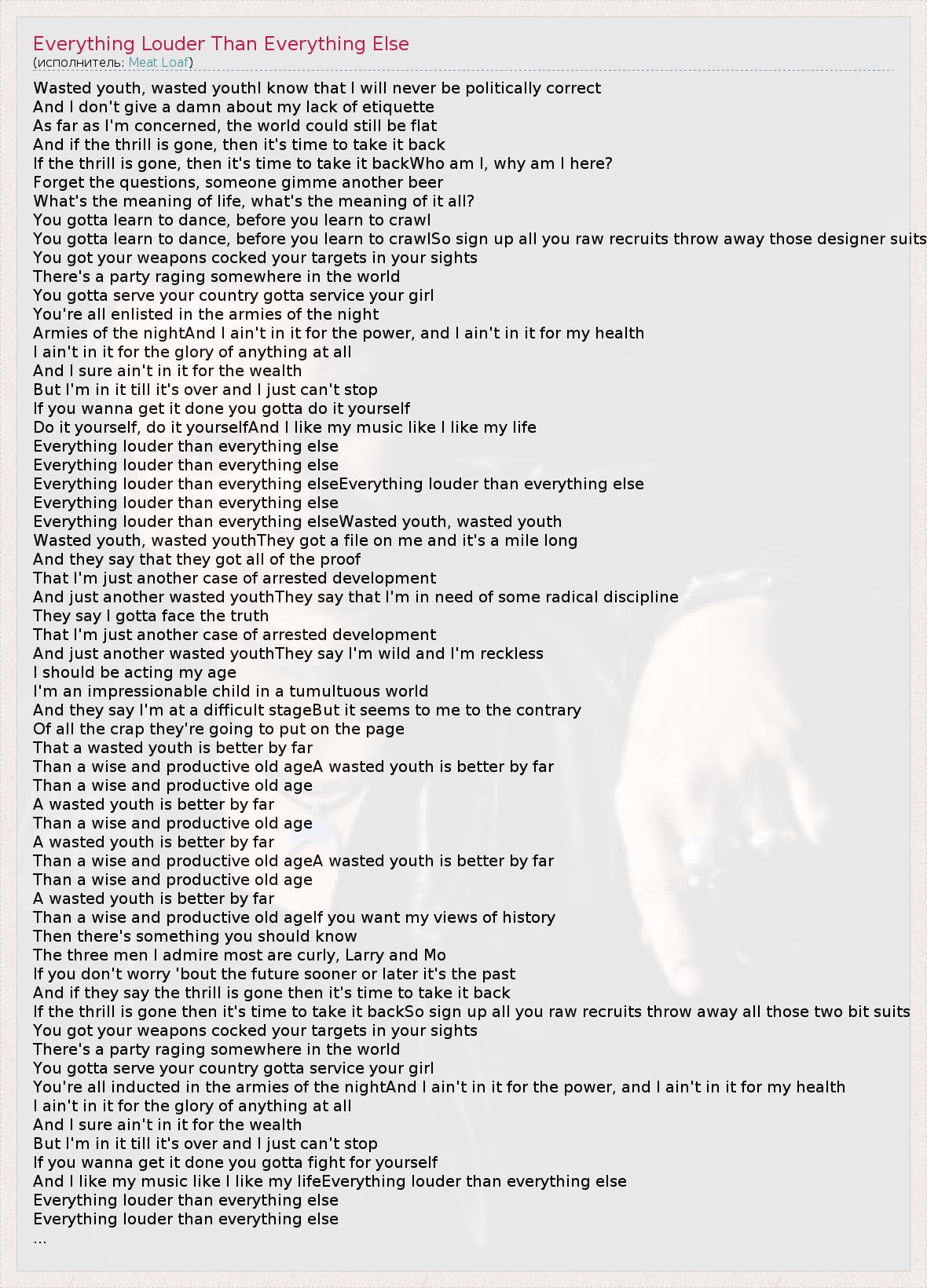 ГлавнаяИсполнителиMeat LoafEverything Louder Than Everything Else