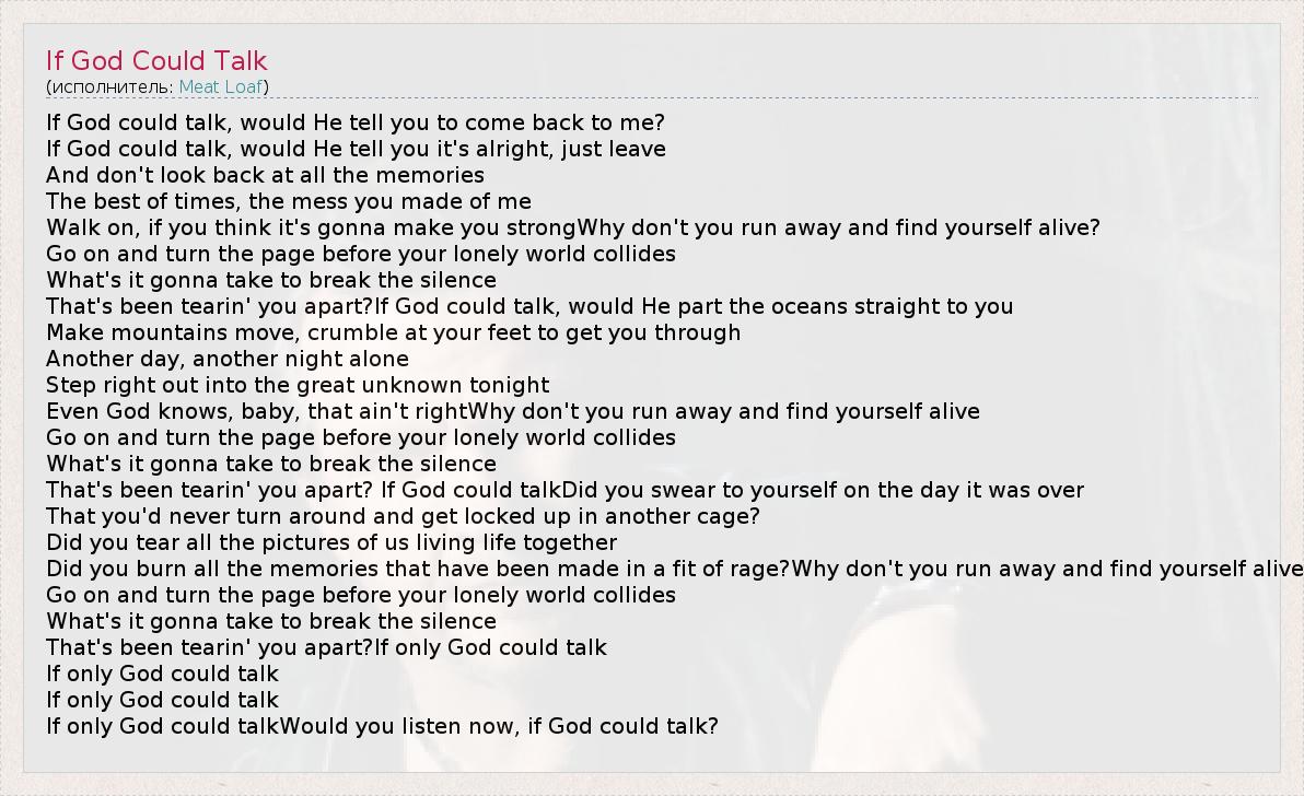 А как ты думаешь, о чем песня "If God Could Talk" ?