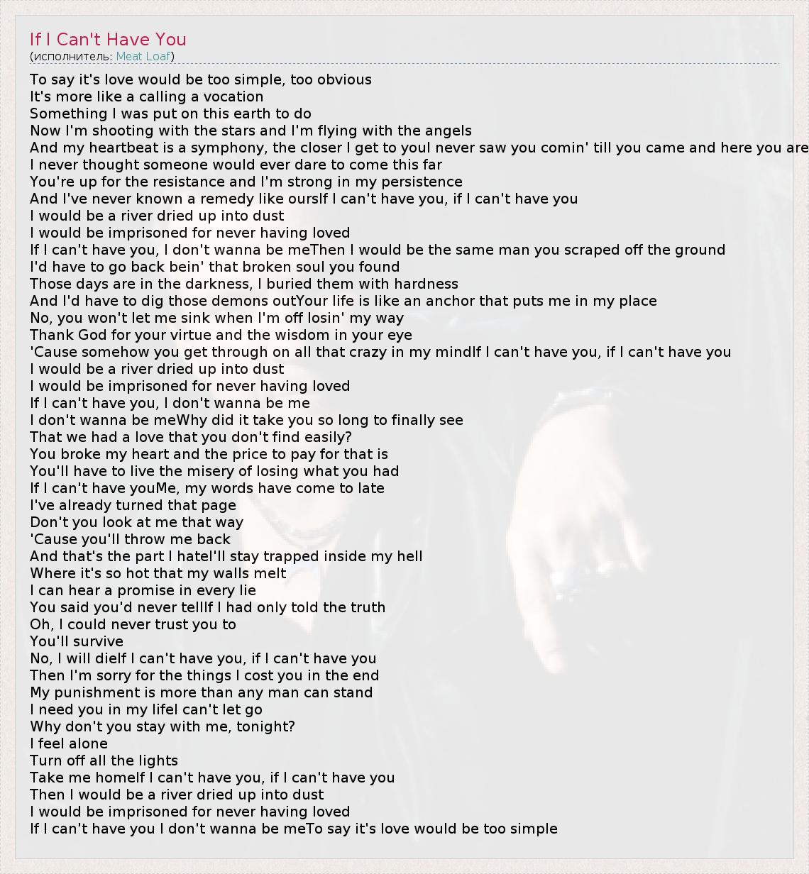 А как ты думаешь, о чем песня "If I Can't Have You" ?