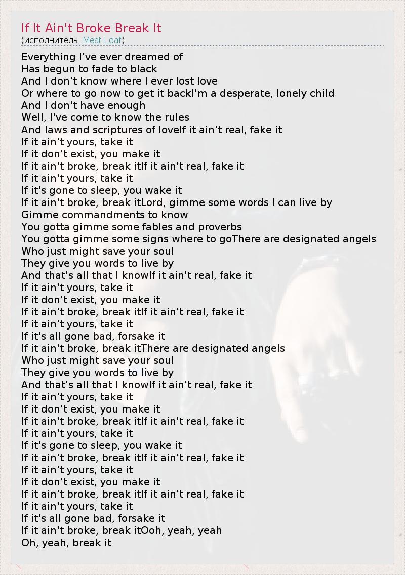 ГлавнаяИсполнителиMeat LoafIf It Ain't Broke Break It