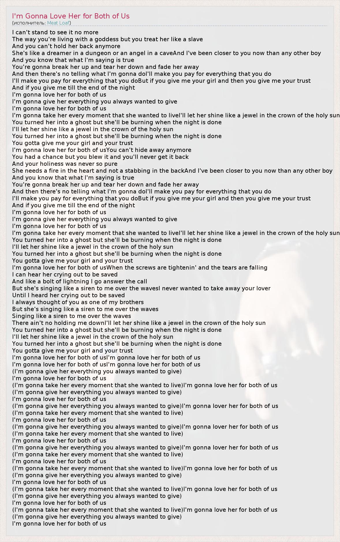 А как ты думаешь, о чем песня "I'm Gonna Love Her for Both of Us" ?