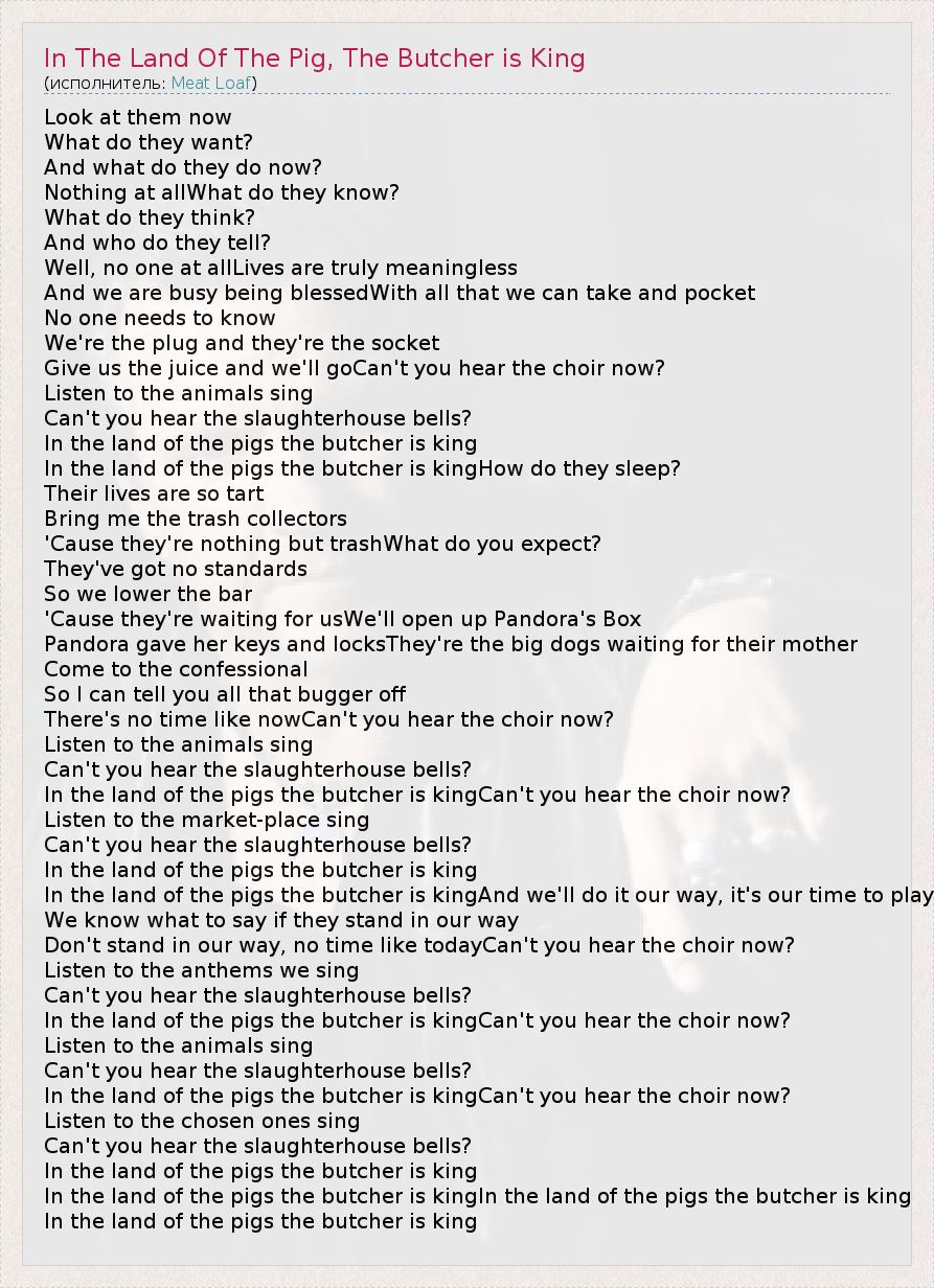 ГлавнаяИсполнителиMeat LoafIn The Land Of The Pig, The Butcher is King
