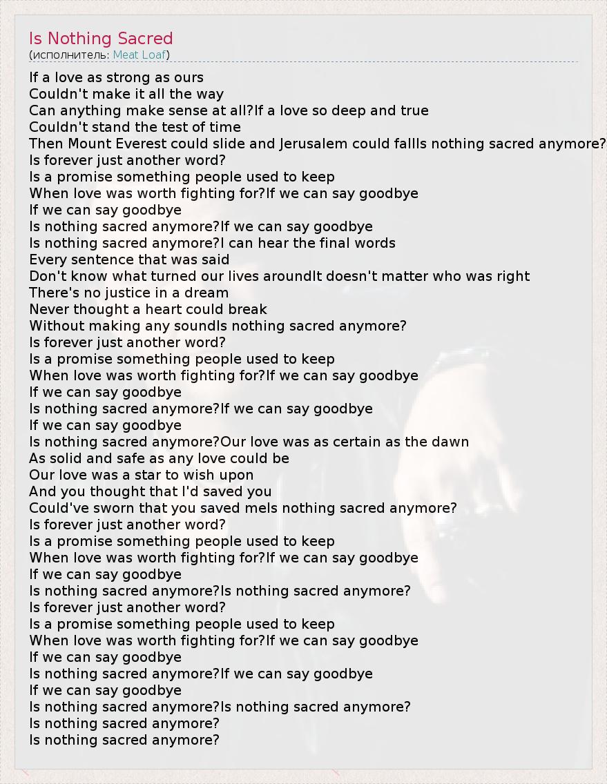 А как ты думаешь, о чем песня "Is Nothing Sacred" ?