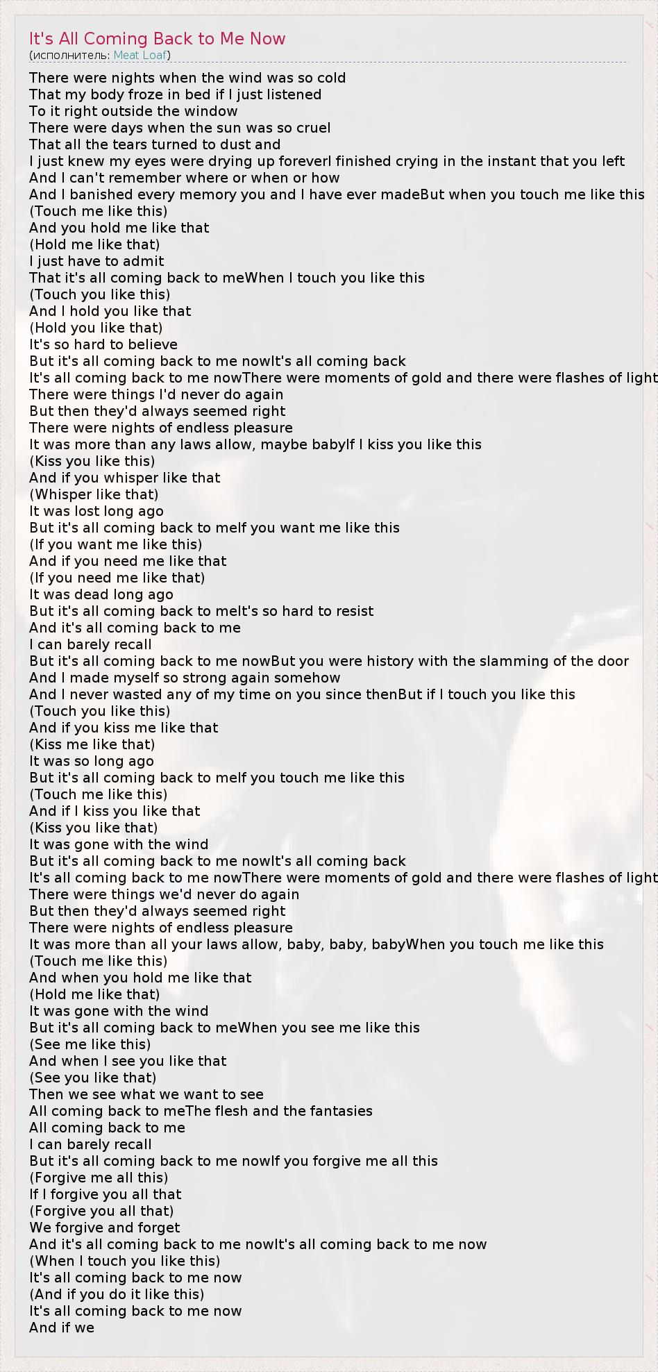 А как ты думаешь, о чем песня "It's All Coming Back to Me Now" ?