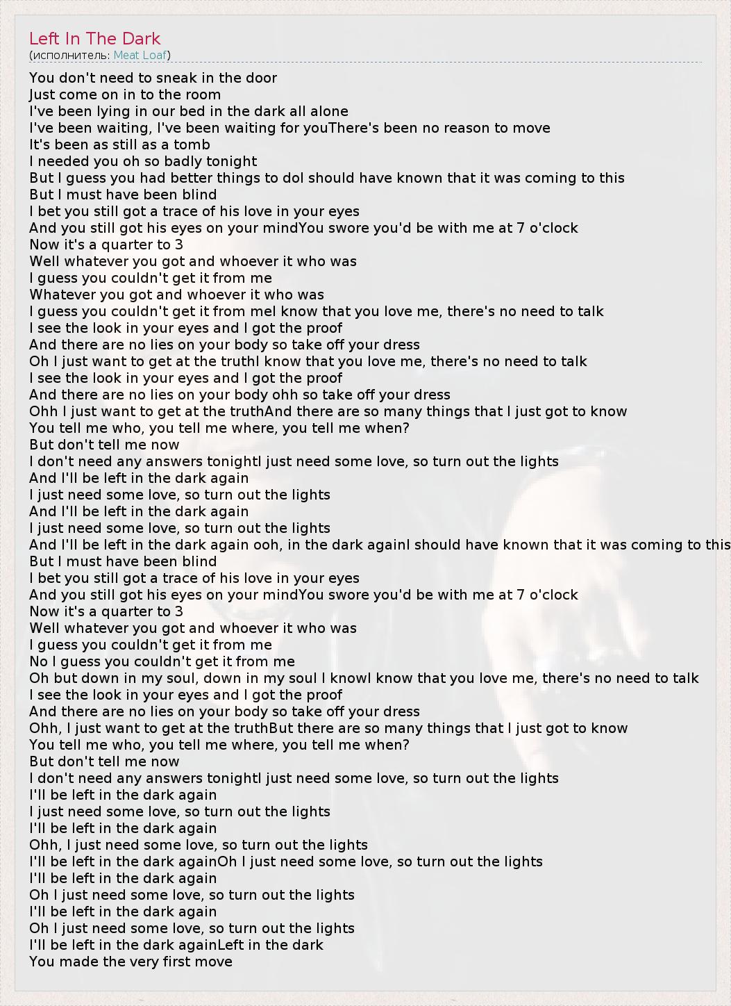 А как ты думаешь, о чем песня "Left In The Dark" ?