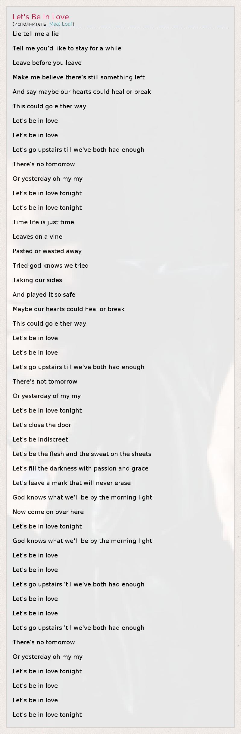 А как ты думаешь, о чем песня "Let's Be In Love" ?