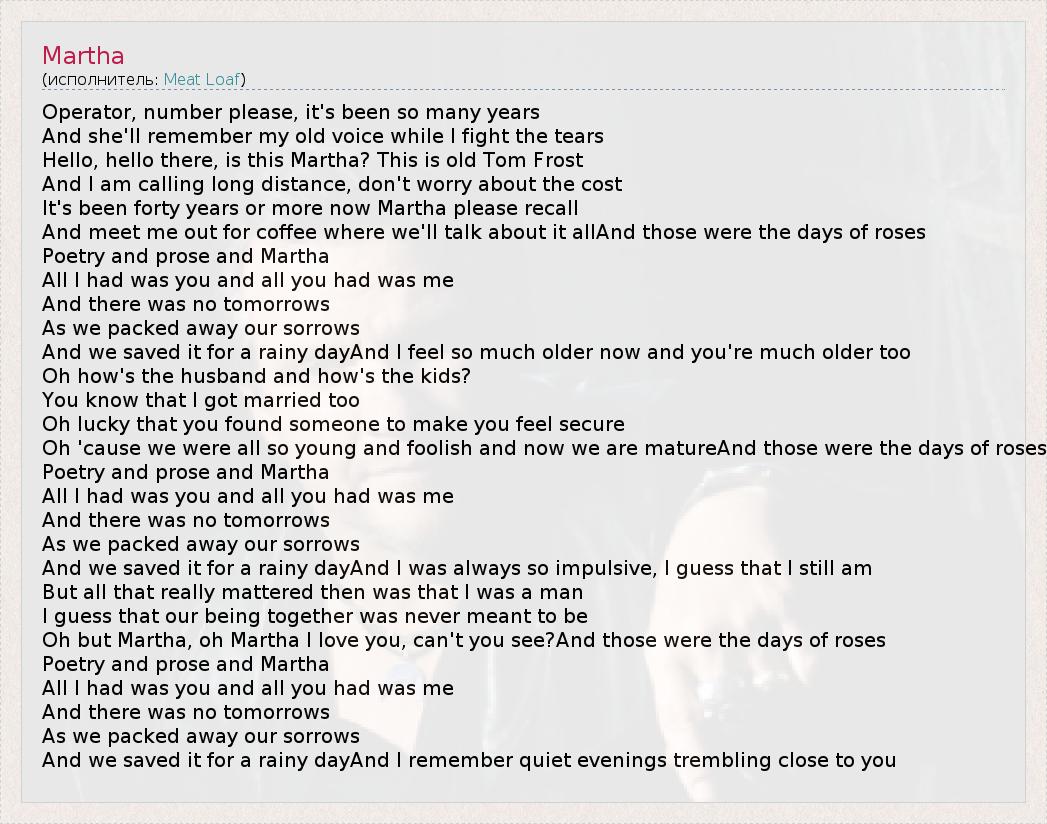 А как ты думаешь, о чем песня "Martha" ?