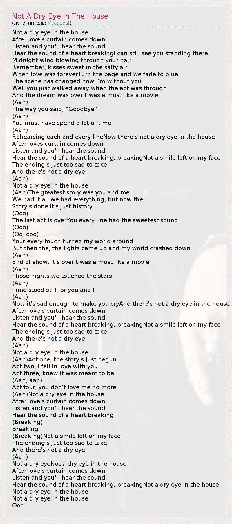 ГлавнаяИсполнителиMeat LoafNot A Dry Eye In The House