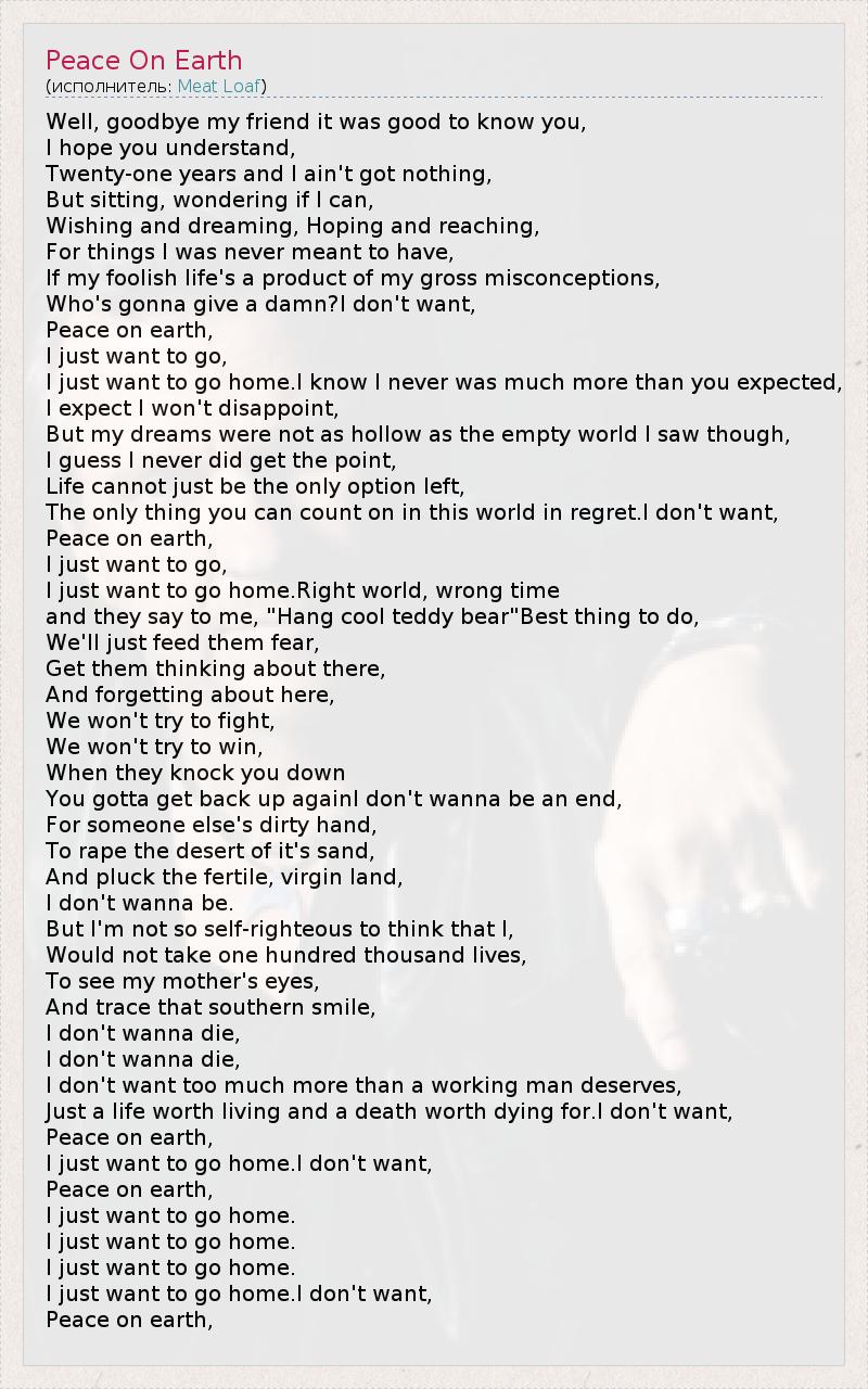 А как ты думаешь, о чем песня "Peace On Earth" ?