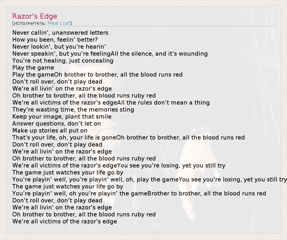 А как ты думаешь, о чем песня "Razor's Edge" ?