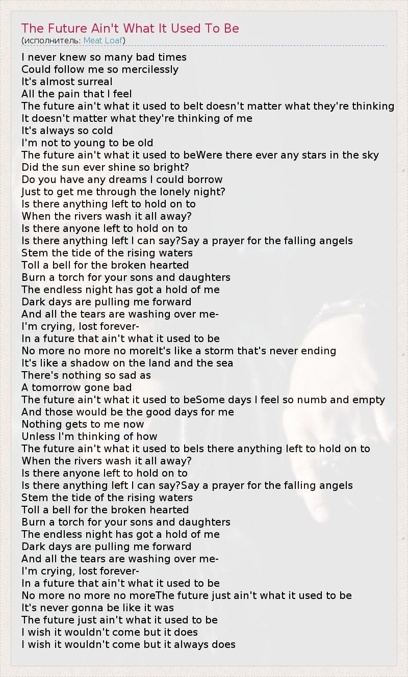 А как ты думаешь, о чем песня "The Future Ain't What It Used To Be" ?