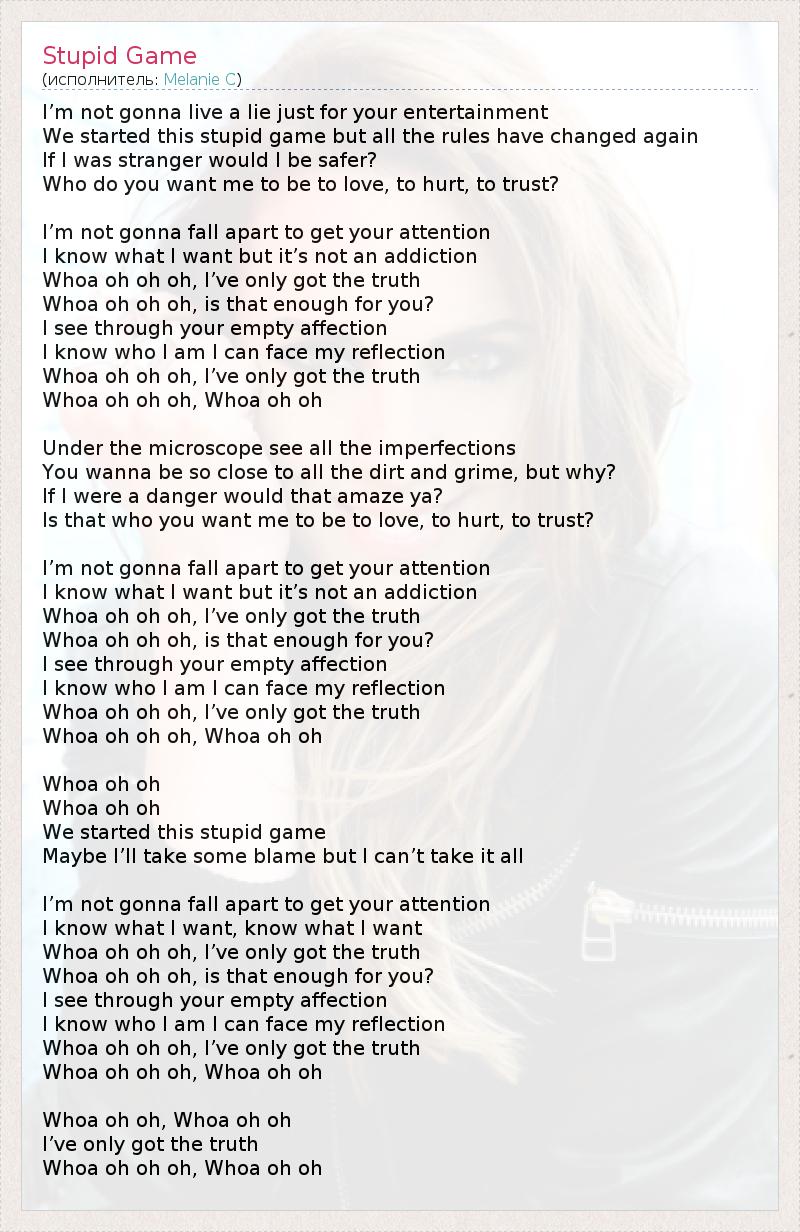 А как ты думаешь, о чем песня "Stupid Game" ?