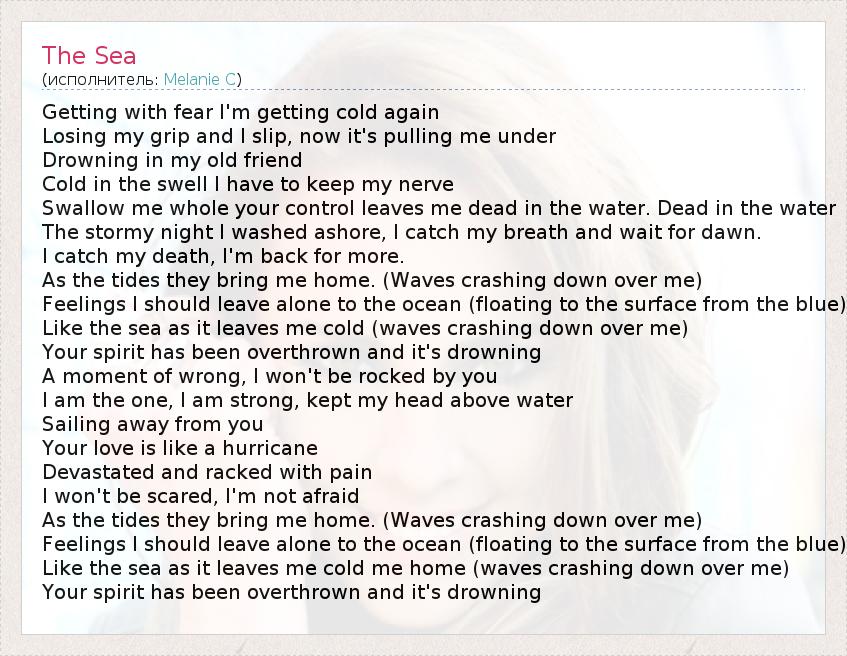Like the sea as it leaves me cold me home (waves crashing down over me)