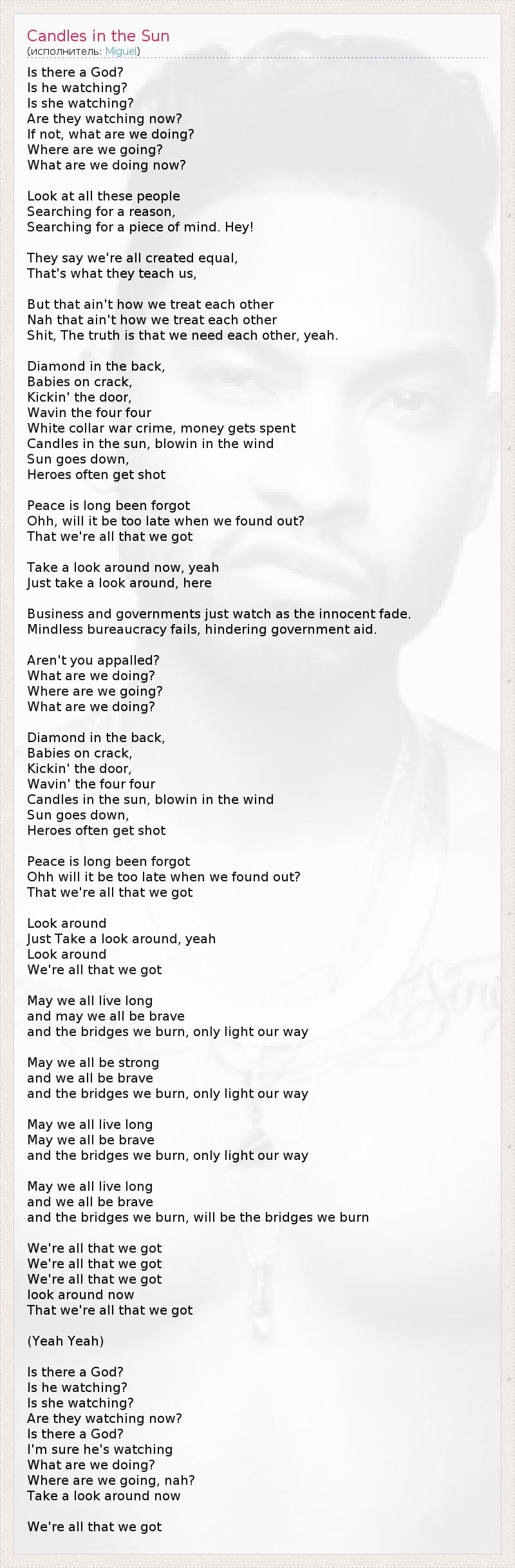 А как ты думаешь, о чем песня "Candles in the Sun" ?