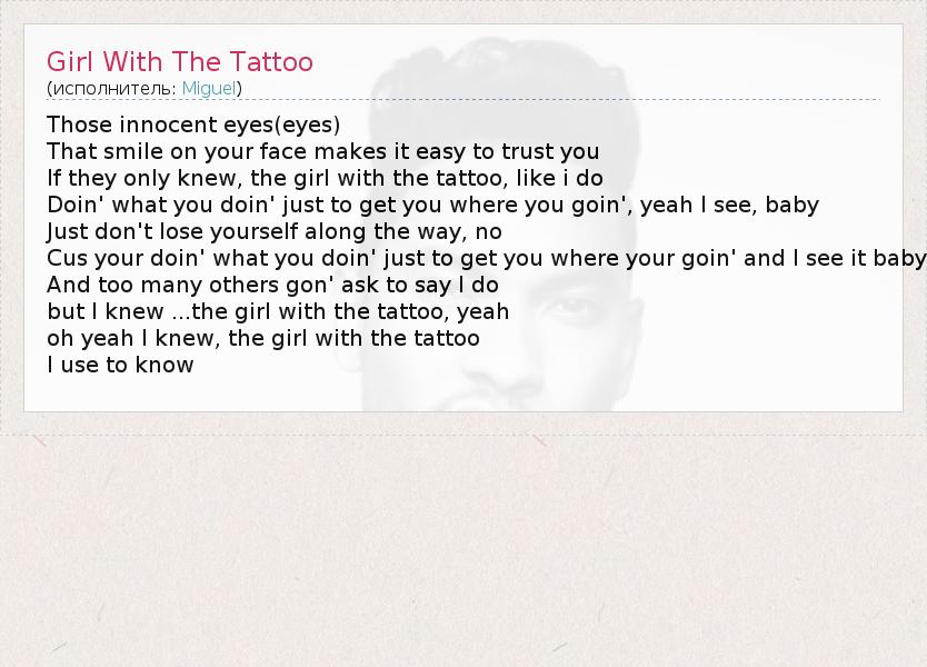 ГлавнаяИсполнителиMiguelGirl With The Tattoo
