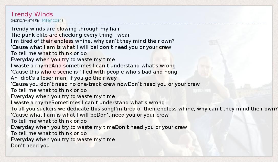 А как ты думаешь, о чем песня "Trendy Winds" ?