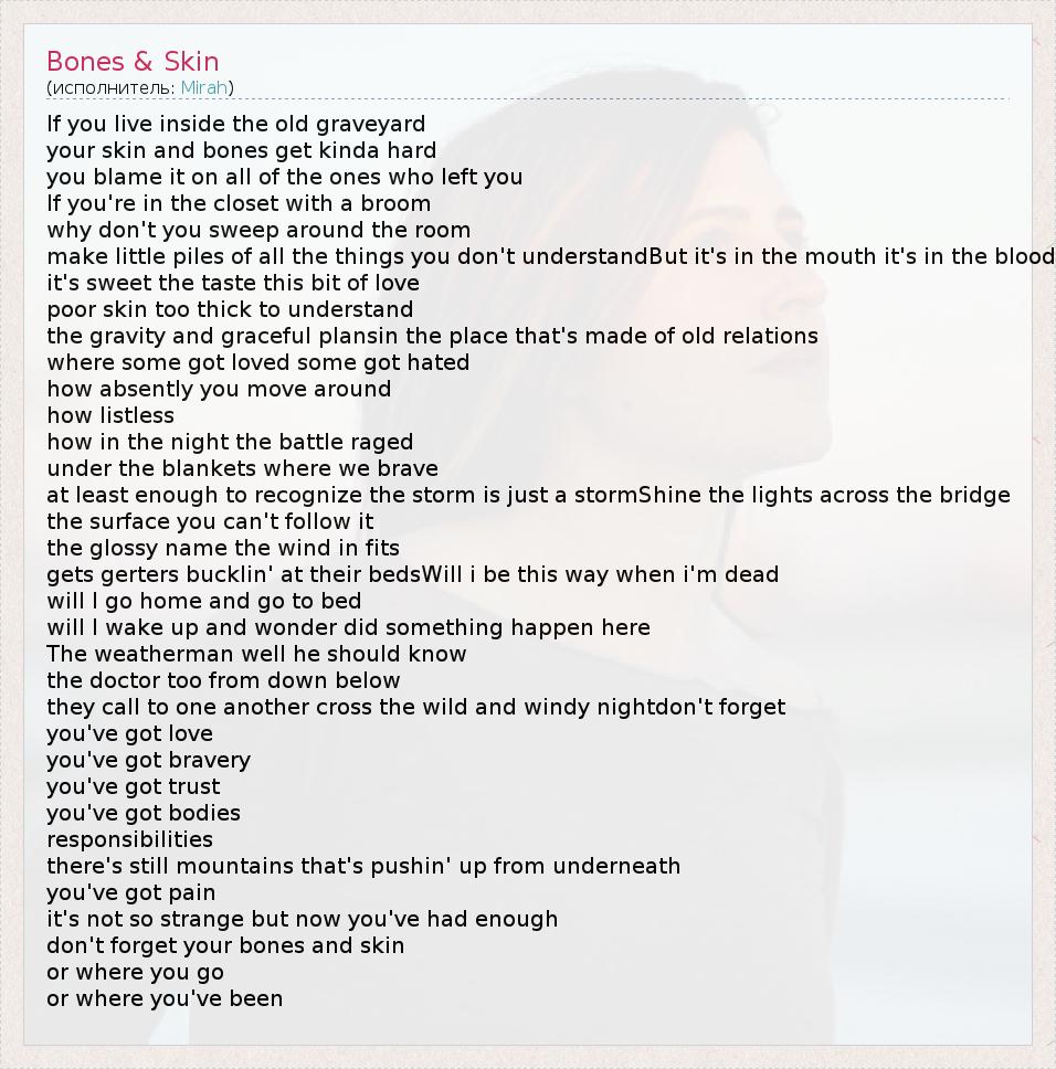 А как ты думаешь, о чем песня "Bones & Skin" ?