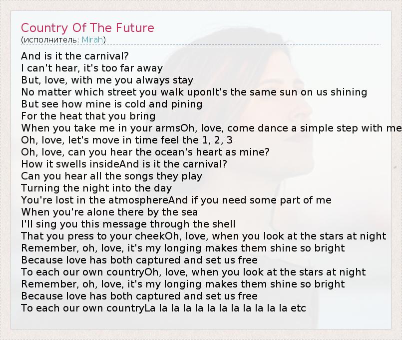 ГлавнаяИсполнителиMirahCountry Of The Future