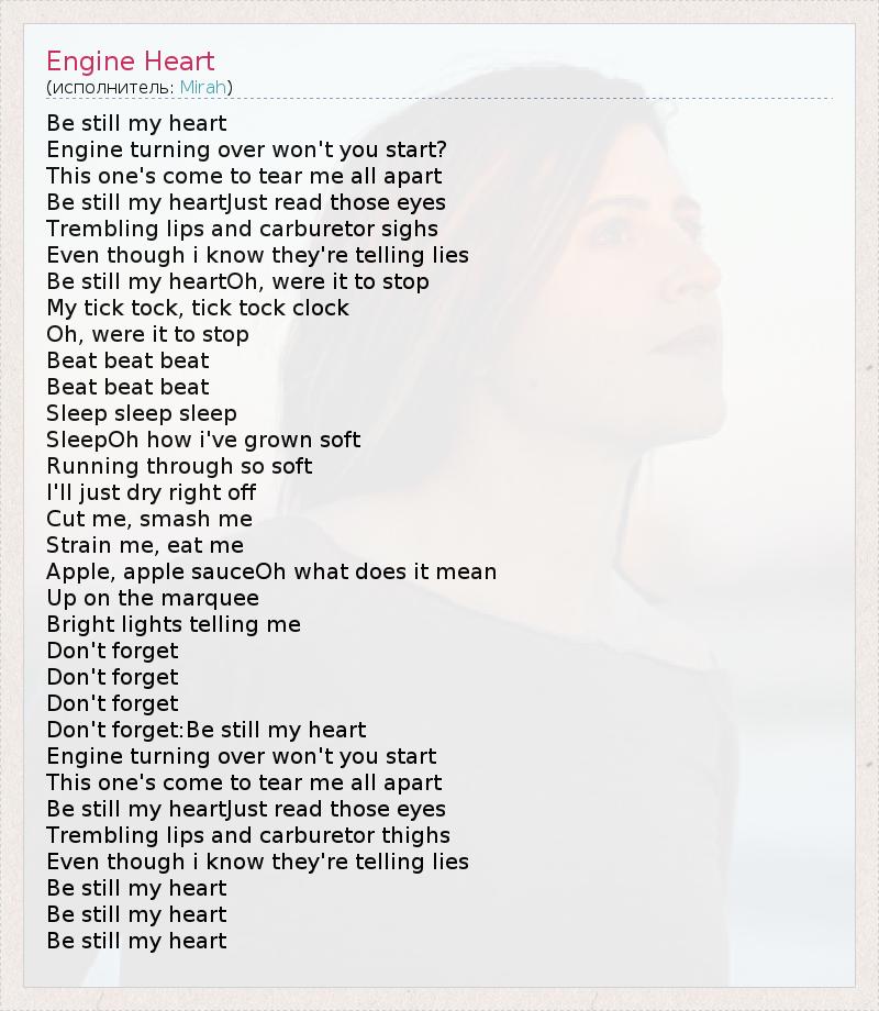 А как ты думаешь, о чем песня "Engine Heart" ?